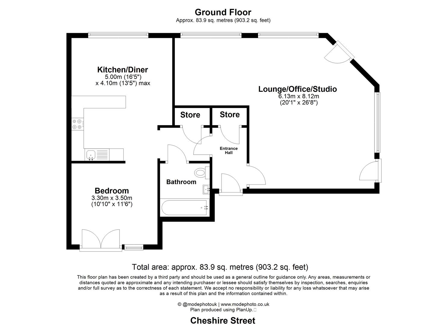 The property is currently used as a working studio - the main space is accessed via Cheshire Street, and has floor to ceiling windows and white tiled flooring providing a clean, smart, bright working environment