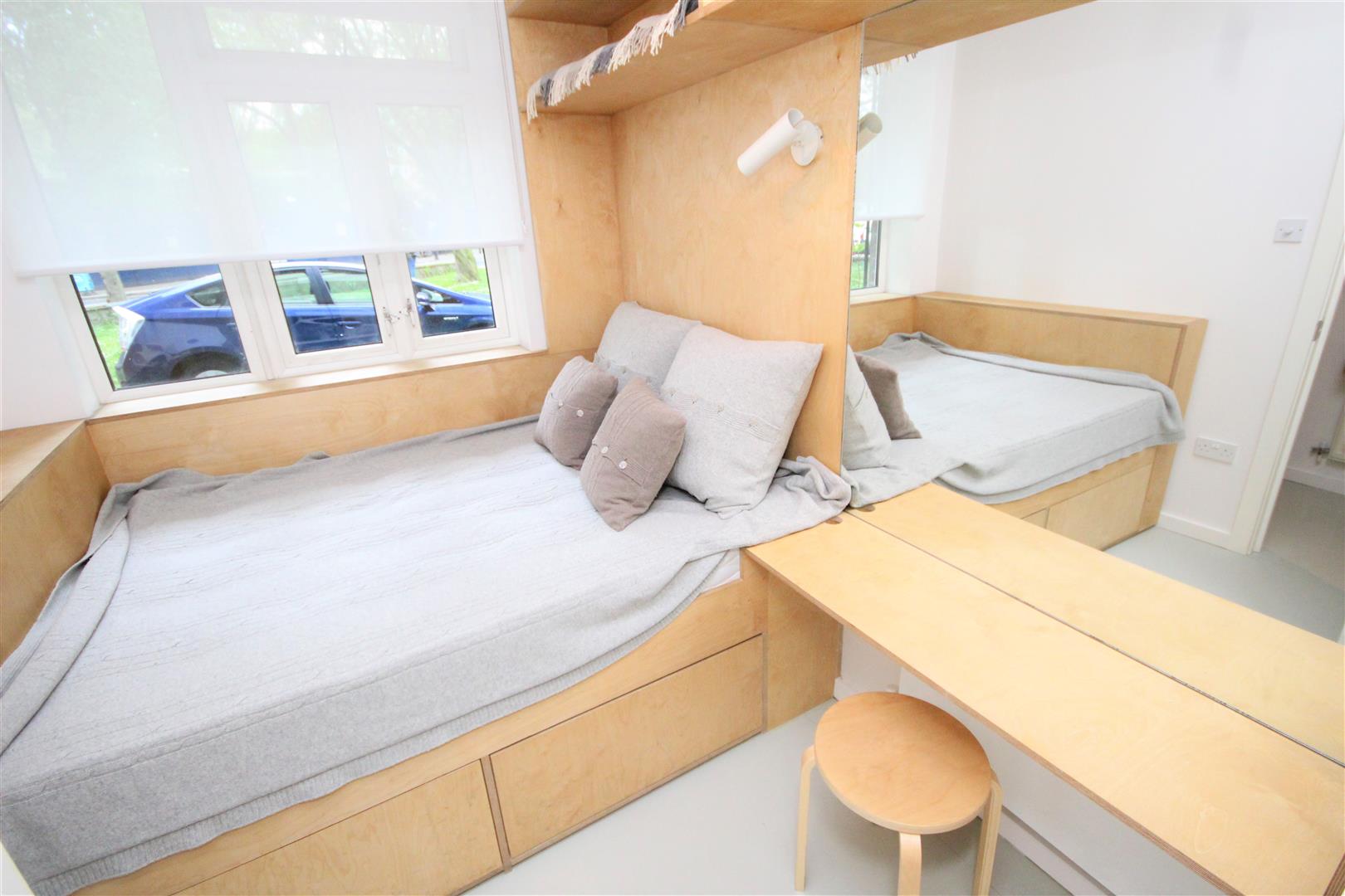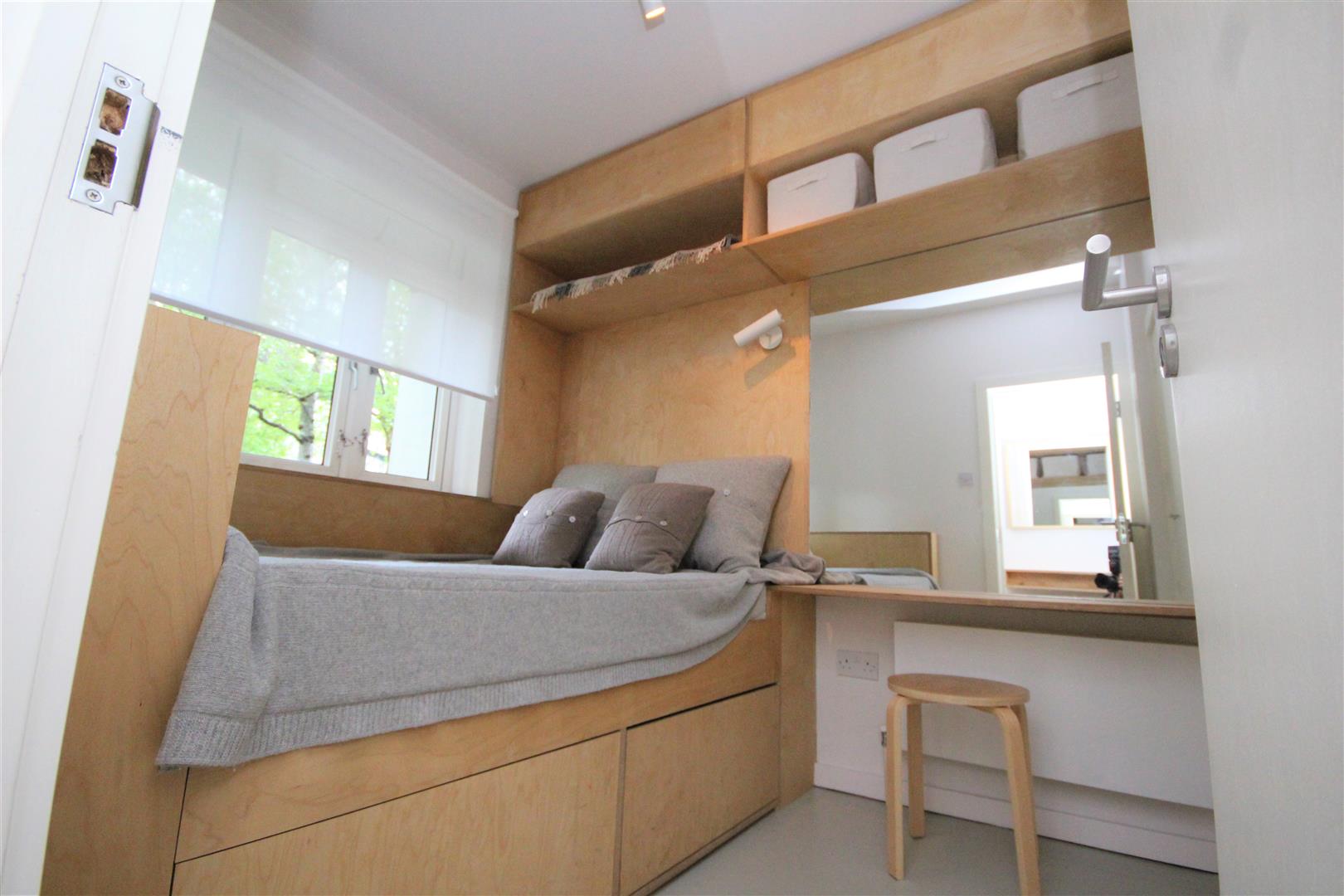 There is a double bedroom with built-in wardrobe, and bespoke bed with additional storage. The modern fitted bathroom features a Japanese bath with shower.