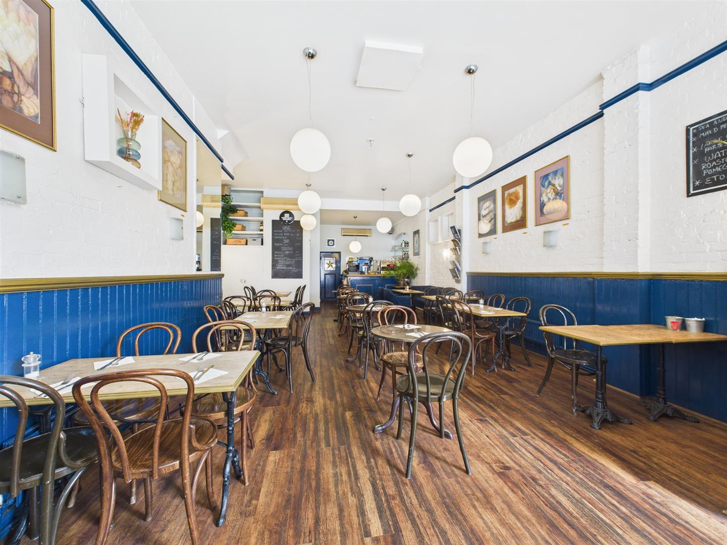 The unit is fully fitted and currently trading, with seating for approximately 40 covers, a fully equipped commercial kitchen, walk-in fridge, extraction system, EPOS setup, and WC facilities. Ideal for continued use as a coffee shop, brunch spot, deli or takeaway, or alternative retail/clinic use under Class E (subject to planning).