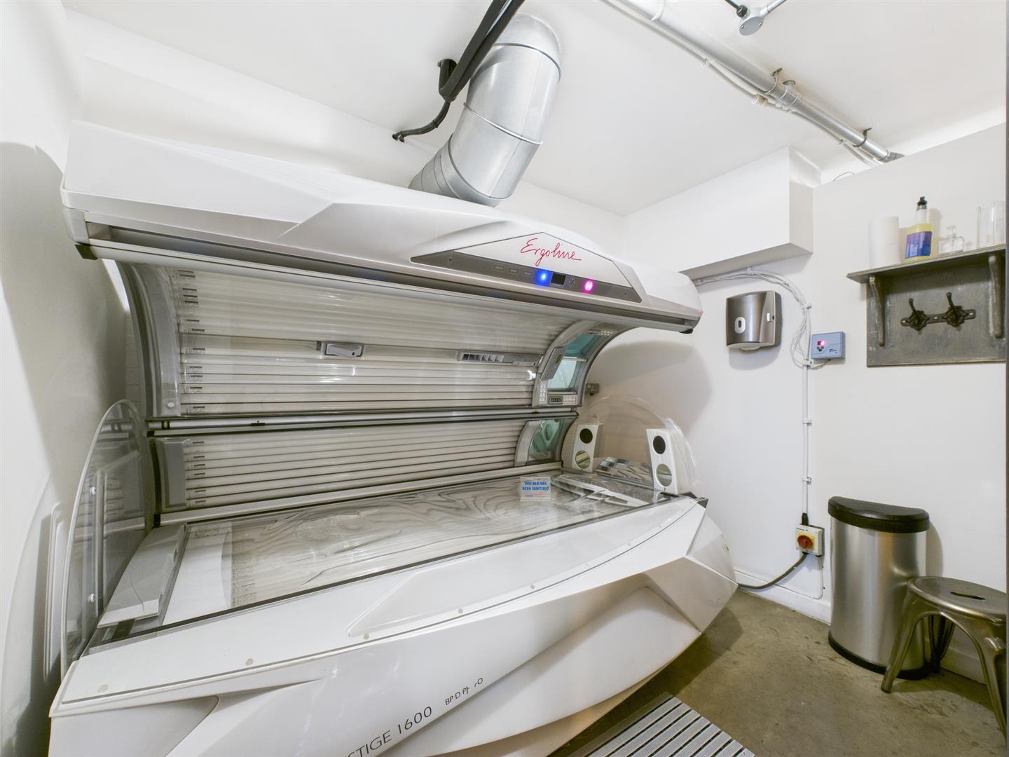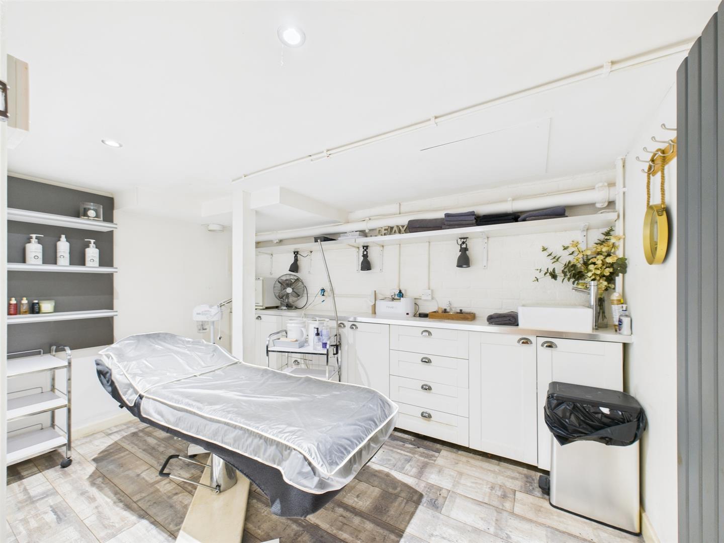 There is an open stairway with good ceiling height leading downstairs to the lower floor, which contains five fully equipped treatment rooms and an opulent waiting area with 2 pedicure stations. The treatment rooms are currently fitted as two rooms with Ergoline lay-flat sunbeds, one room with Ergoline vertical sunbed, a spray room and a beauty/treatment room. The basement includes a customer facing W/C.