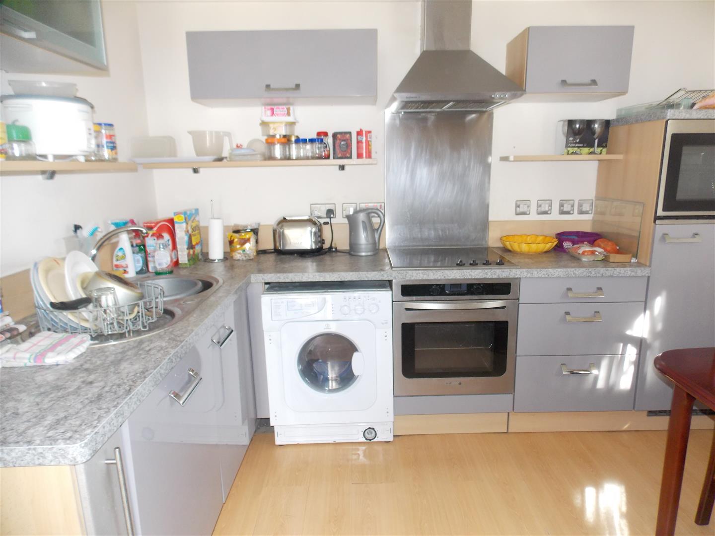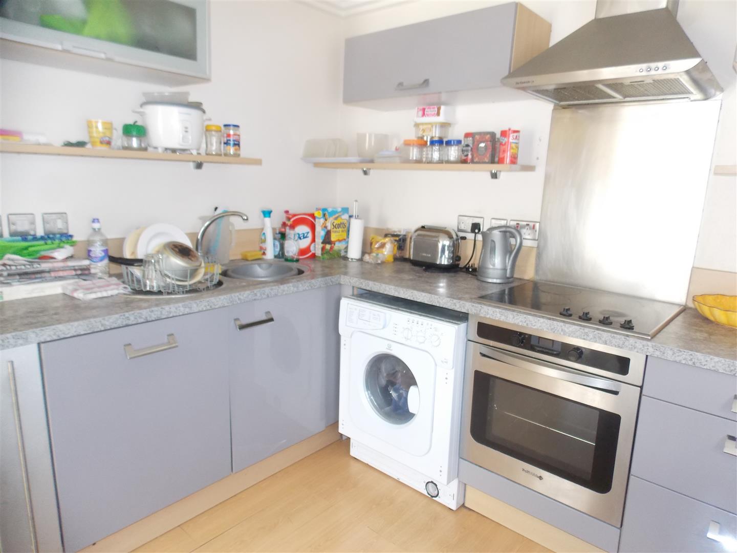 The property boasts a spacious open-plan lounge and kitchen area with laminate flooring, leading directly onto a private balcony - perfect for relaxing or entertaining. The double bedroom benefits from a built-in wardrobe, and the apartment also includes a private parking space.