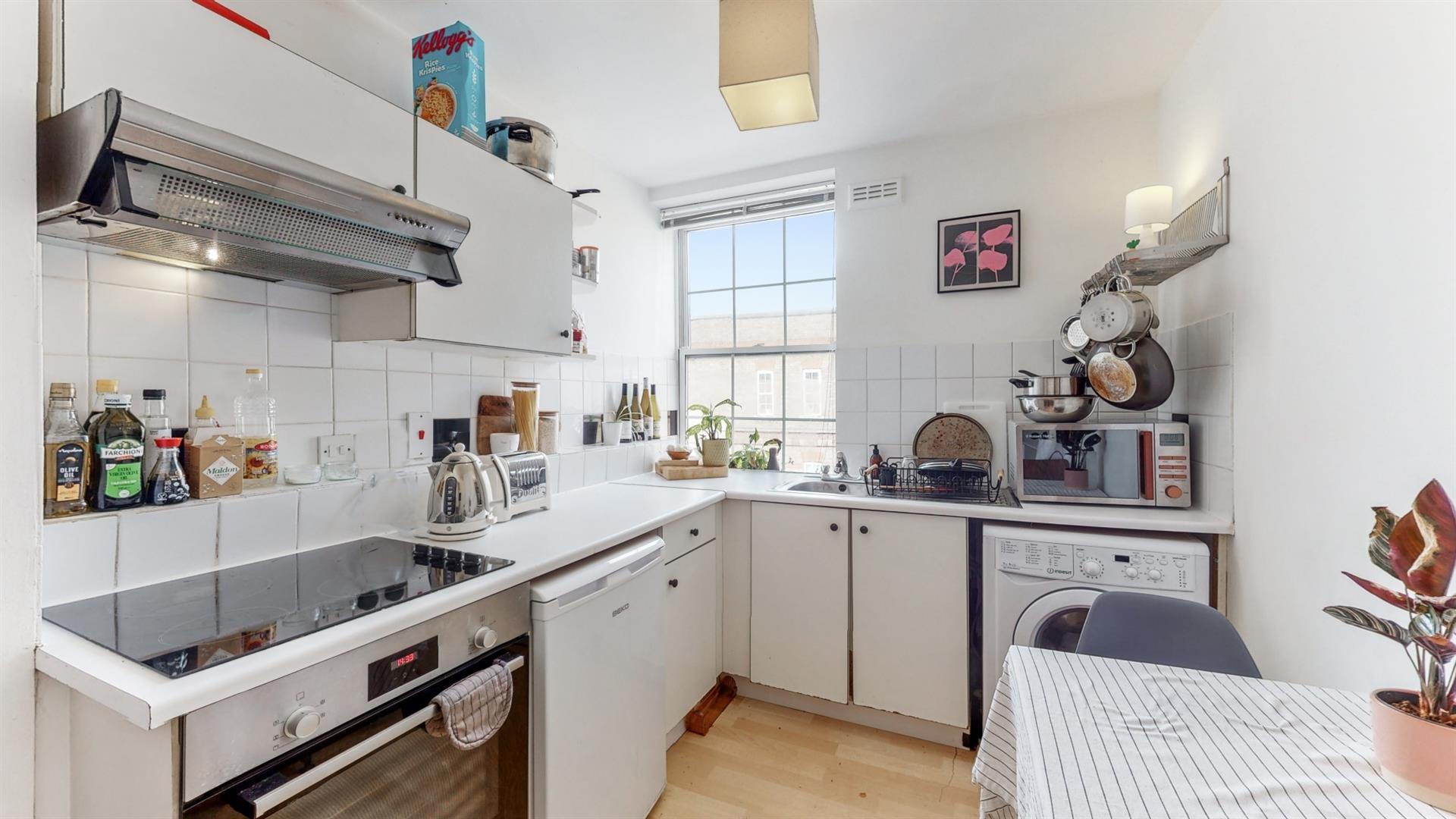Fantastic location just a few moments from Spitalfields Market is this one-bedroom apartment set within the top floor of a private purpose-built block.